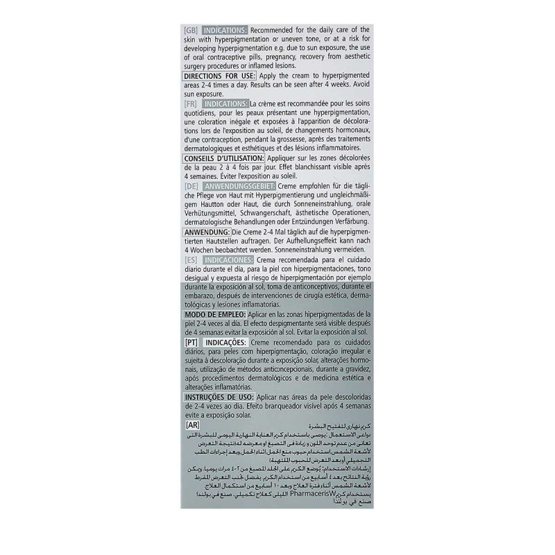 Recommandé pour les soins quotidiens des peaux présentant une hyperpigmentation, un teint irrégulier ou une peau à risque de décoloration due à l’exposition au soleil, aux changements hormonaux, à la contraception orale, à la grossesse, aux traitements dermatologiques, aux chirurgies esthétiques ou à l’inflammation.