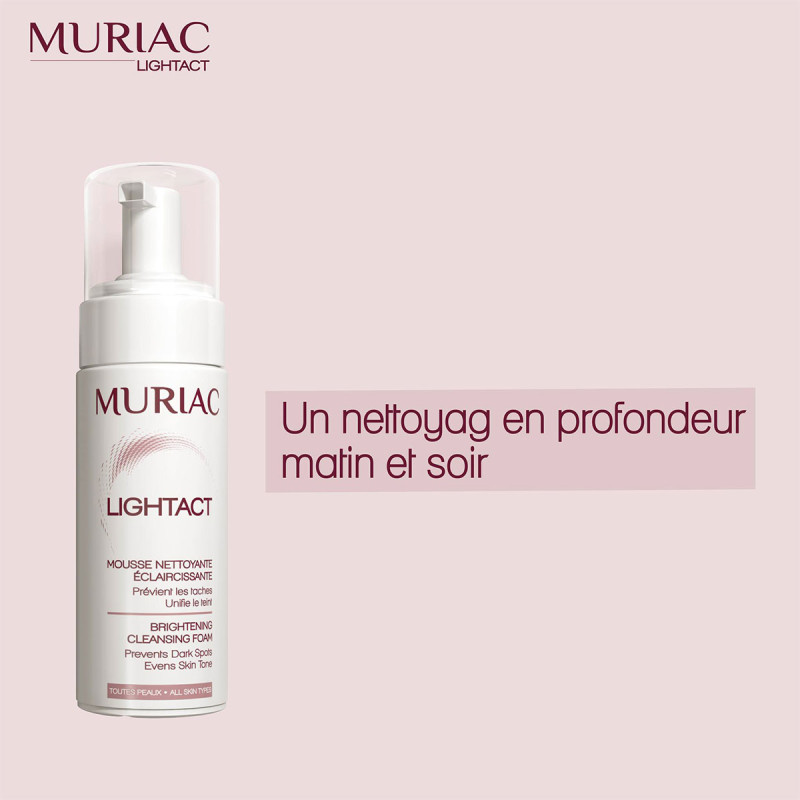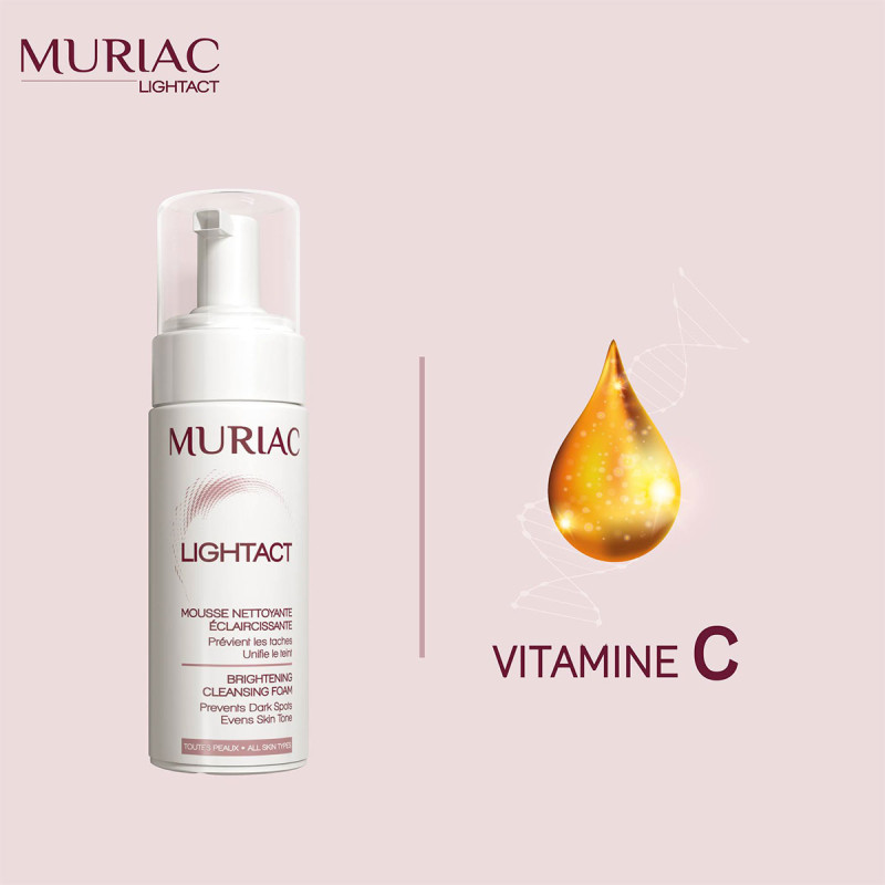 Mousse nettoyante Muriac Lightact à la Vitamine C (avec une action illuminatrice/éclaircissante) et à l'extrait de fleur de Lys (à action adoucissante et apaisante)