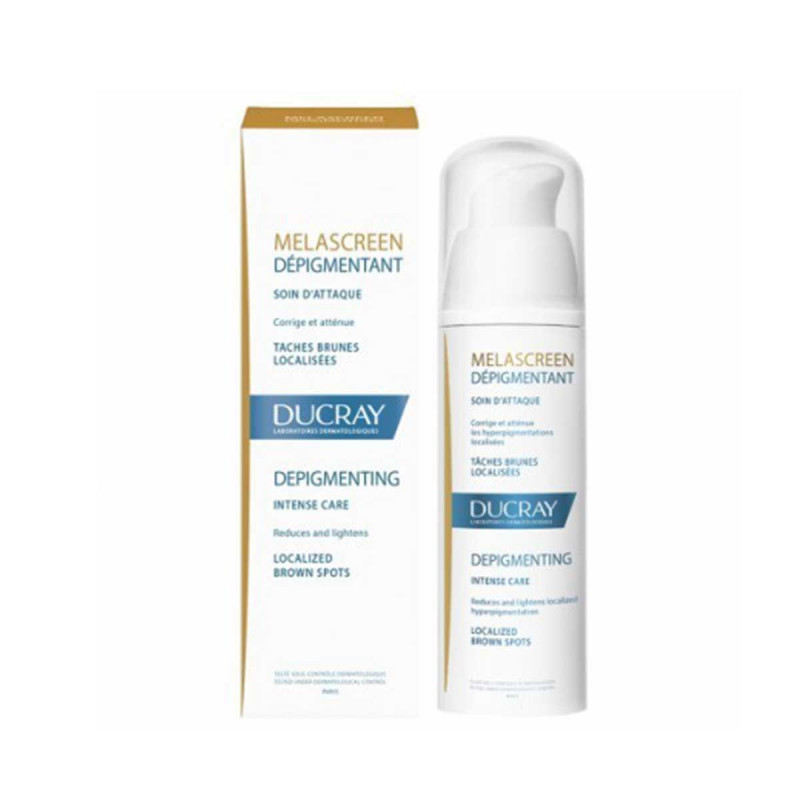 Ducray Melascreen Dépigmentant est une crème qui agit sur l’hyperpigmentation en attaquant taches brunes localisées. C’est un concentré dépigmentant grâce à l’association de l'acide azélaïque et de l'acide glycolique. Elle permet de corriger et atténuer les pigmentations localisées.