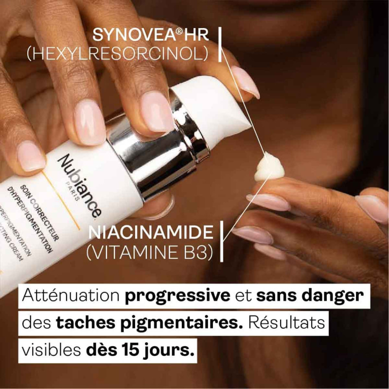 - Hexylresorcinol (Synovea® HR) : Corrige les taches d’hyperpigmentation