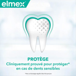 Prenez soin de vos dents sensibles avec le dentifrice ELMEX Sensitive Professional. Ce dentifrice vous offre la meilleure protection ELMEX face à la sensibilité dentaire, en obturant les petits canalicules qui mènent au nerf dentaire à l'origine de l'hypersensibilité. En obturant les canalicules, ce dentifrice bloque la douleur et appliqué régulièrement forme une barrière de protection durable servant de rempart contre la sensibilité.