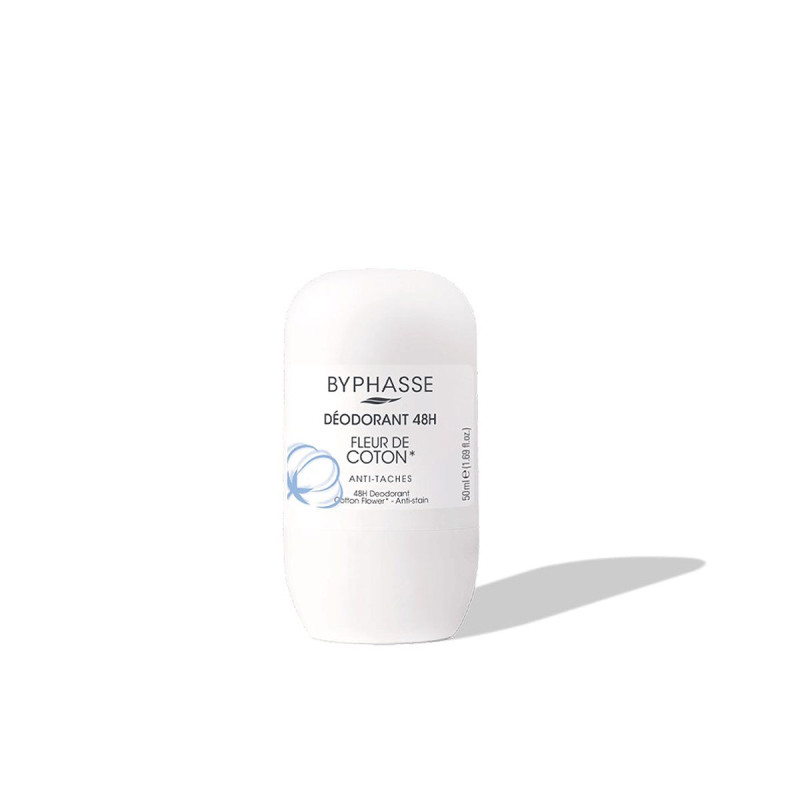 Le déodorant 48H BYPHASSE au fleur de coton et à action anti-transpirante est une véritable bouffée d'air frais. Son délicat parfum floral vous assure une sensation de fraîcheur longue durée.