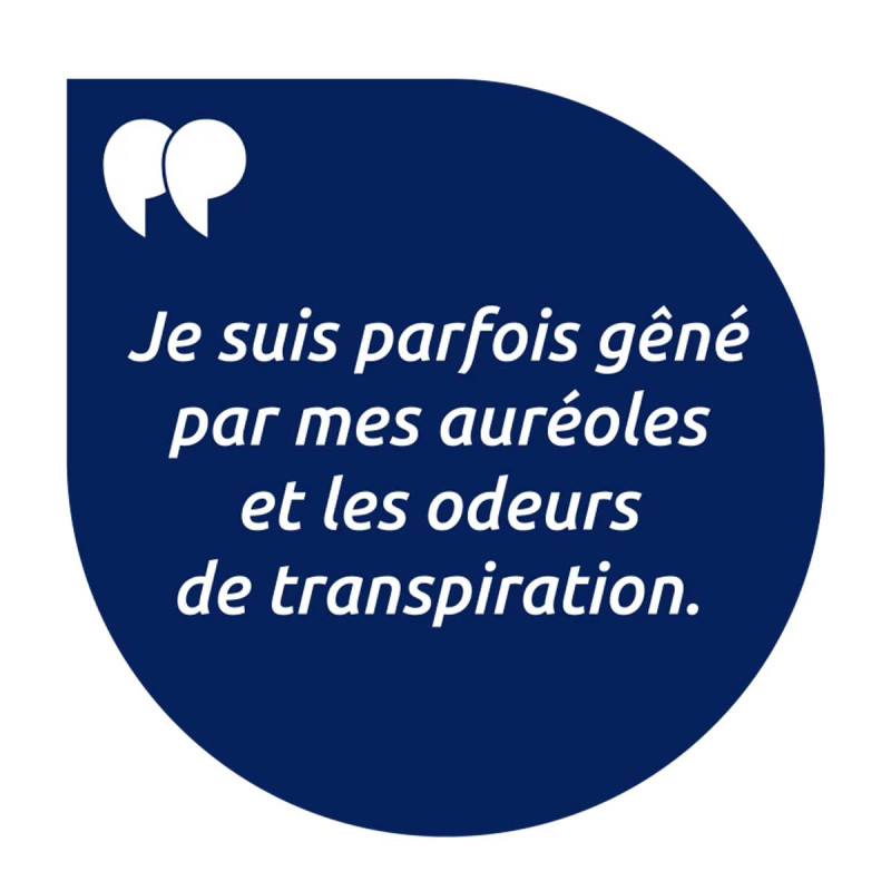 (1) Test d’efficacité anti-transpirante par gravimétrie sur 32 personnes. Test d’usage sur 21 personnes. Anti-trace approuvé par 100% des utilisateurs.