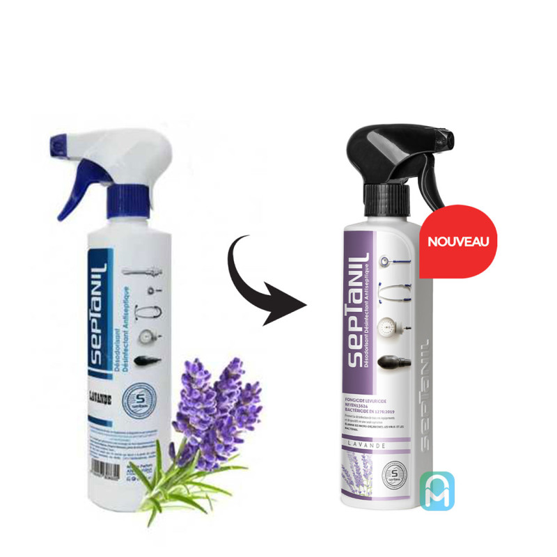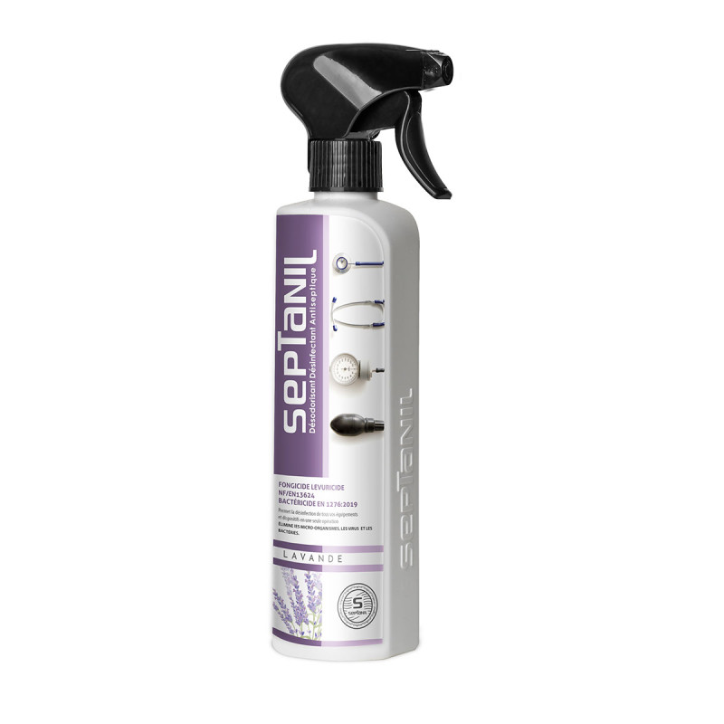 Le désodorisant désinfectant antiseptique permet le nettoyage et la désinfection de tous vos équipements et dispositifs en une seule opération (plan de travail, paillasses, bureau, fauteuils, téléphones, chariots, etc.….)