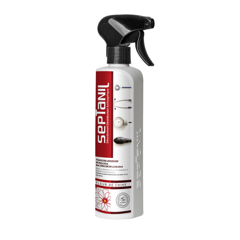 Le désodorisant désinfectant antiseptique permet le nettoyage et la désinfection de tous vos équipements et dispositifs en une seule opération (plan de travail, paillasses, bureau, fauteuils, téléphones, chariots, etc.….)