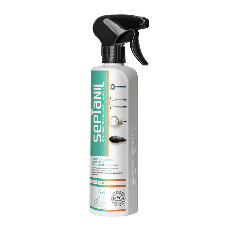 Le désodorisant désinfectant antiseptique permet le nettoyage et la désinfection de tous vos équipements et dispositifs en une seule opération (plan de travail, paillasses, bureau, fauteuils, téléphones, chariots, etc.….)