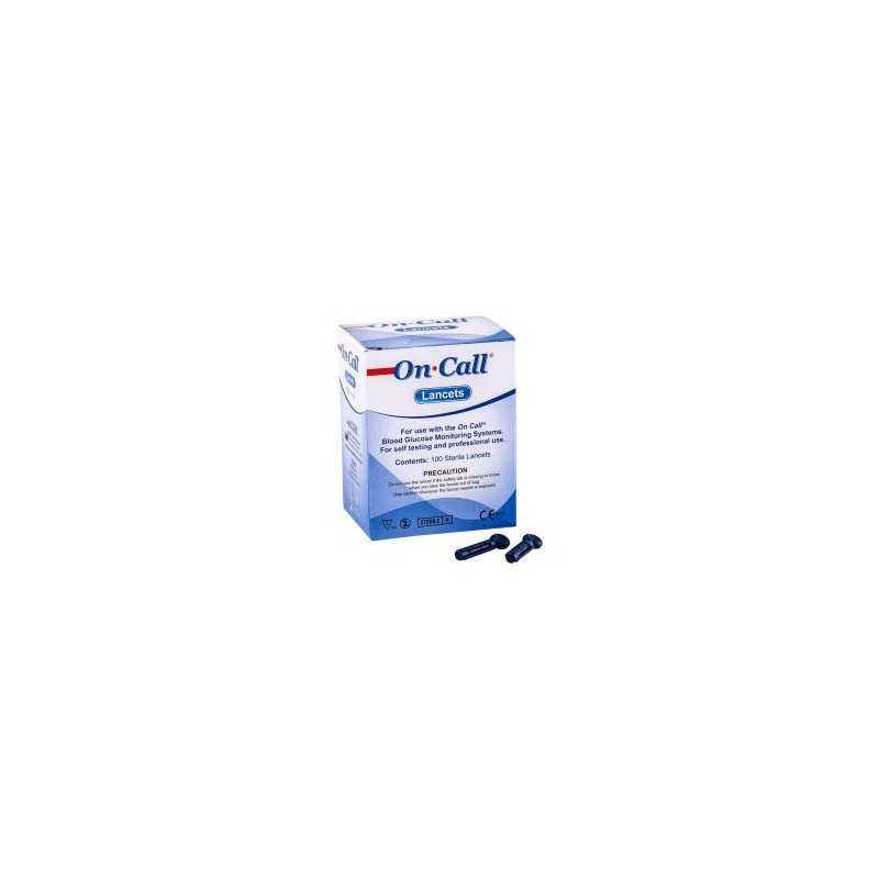 Les lancettes On Call ont une épaisseur de 26G, de sorte que vous avez toujours la quantité exacte de sang à ajouter à vos bandelettes de test On Call pour votre glucomètre On Call.