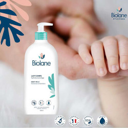 Le lait corps nourrit durablement et apaise la peau de votre bébé.
