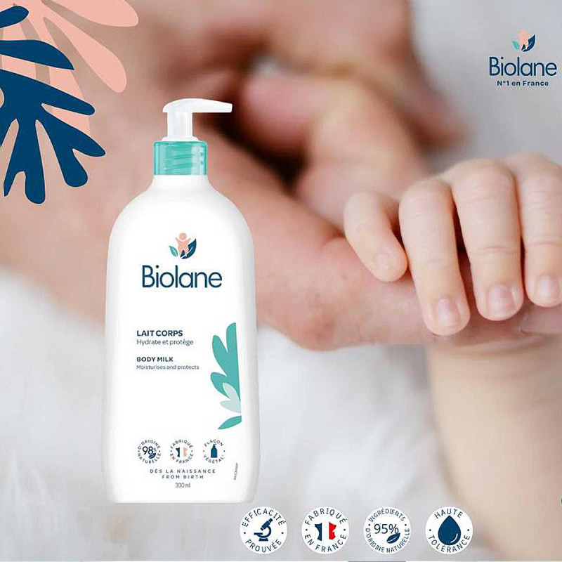 Formulé à 98% d’origine naturelle, testé sous contrôle dermatologique et garanti haute tolérance, le Lait Corps nourrit durablement et apaise la peau sensible du bébé grâce à son complexe d’émollients d’origine végétale. La peau est douce, souple et renforcée.