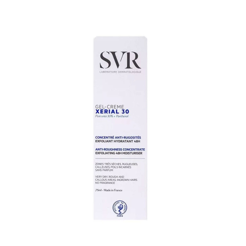 SVR Xerial Gel-Crème Concentré : Soin intensif anti-rugosités pour une peau plus lisse et hydratée. Enrichi en urée pure à 30 %, il exfolie, adoucit et nourrit les zones très sèches dès la première application. Convient aux peaux sensibles.