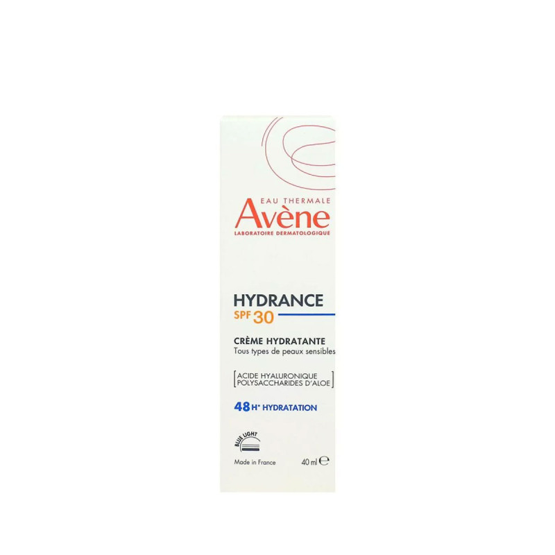 Hydratez et protégez votre peau avec Avène Hydrance SPF 30. Une crème onctueuse pour une hydratation durable et une protection UV quotidienne. Enrichie en acide hyaluronique et polysaccharides d’aloe, elle offre 48h d’hydratation continue tout en protégeant la peau des UV et de la lumière bleue. Texture confortable, non grasse.
