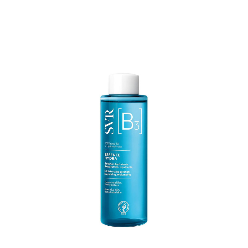 Essence riche en vitamine B3, aussi nommée Niacinamide. Cet actif multi-correcteur de référence fortifie et restaure la barrière cutanée. SVR l’a concentrée à 2% pour réparer les peaux fragilisées. La Vitamine B3 hydrate et renforce la peau. Couplée à deux acides hyaluroniques de poids moléculaires différents (moyen et haut), l’Essence [B] repulpe les peaux déshydratées.