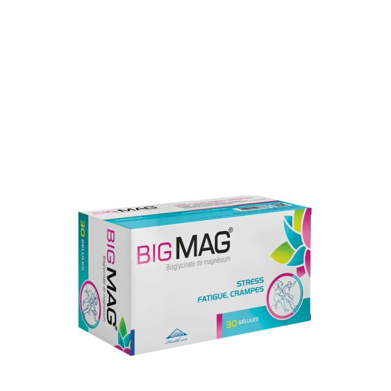 BIGMAG est un complément alimentaire formulé avec du bisglycinate de magnésium, reconnu pour sa biodisponibilité optimale et sa tolérance digestive. Chaque dose (415 mg de bisglycinate) correspond à 75 mg de magnésium élément, essentiel au fonctionnement normal du système nerveux, à la contraction musculaire et à la réduction de la fatigue.