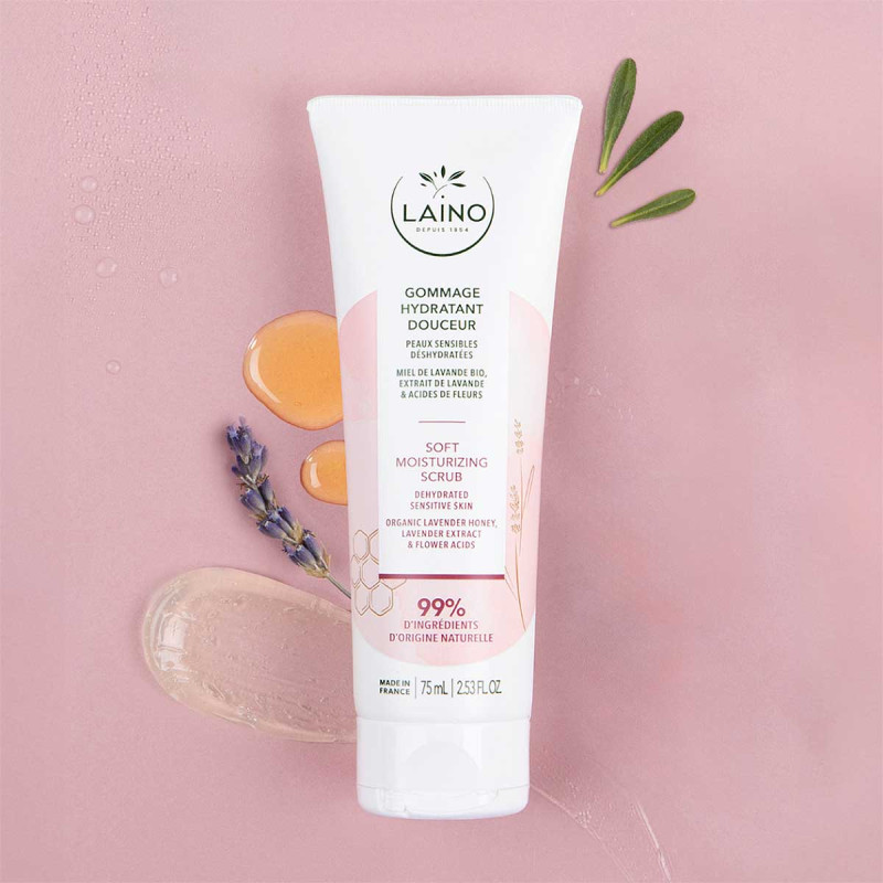 Ce gommage hydratant douceur Laino élimine cellules mortes, impuretés et particules de pollution.