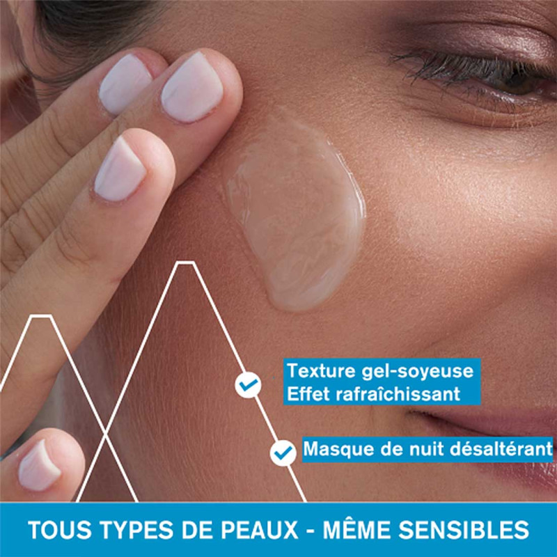 Enrichi en Eau Thermale et en acide hyaluronique, il réhydrate en profondeur, apaise et révèle un teint frais et lumineux dès le réveil.