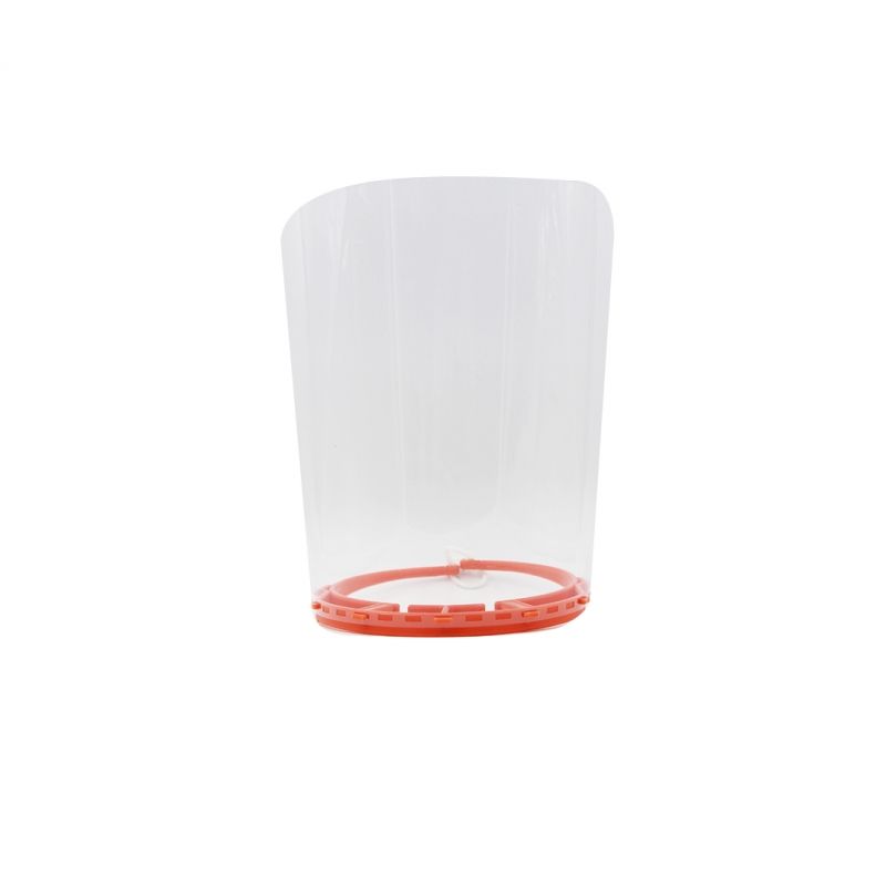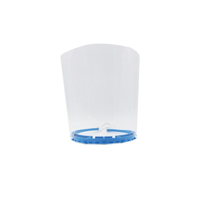 Visières de protection en plastique sont parfois utilisées en remplacement des masques chirurgicaux. Existe en bleu et en rouge