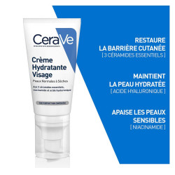 CeraVe Crème hydratante visage Hydrate la peau en continu et aide à préserver la barrière protectrice du visage et du cou....