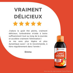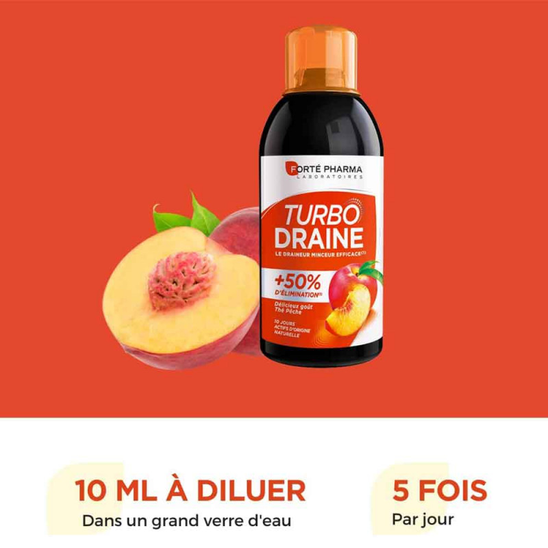 La boisson drainante Turbo Draine de Forte Pharma est indiquée pour drainer, éliminer, et aide à brûler les calories.