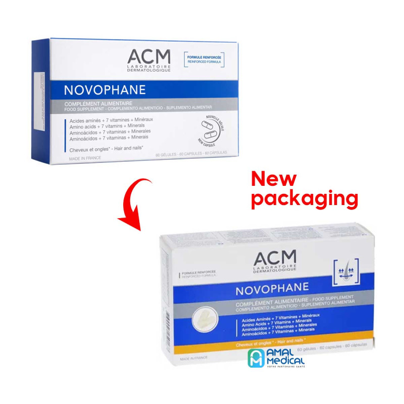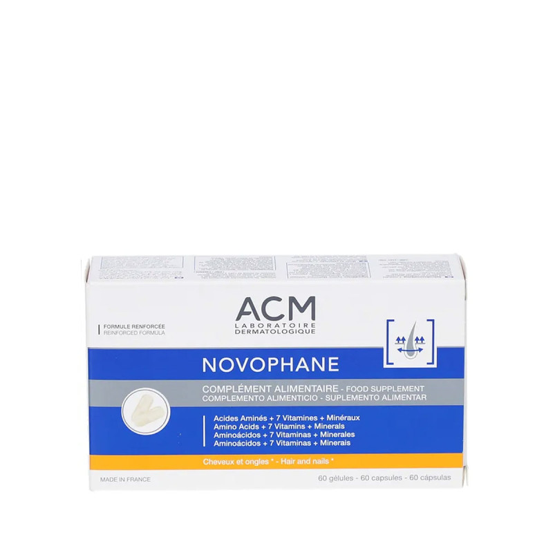 - Chute de cheveux passagère ou saisonnière, altération de la qualité des cheveux, ongles fragiles, mous, dédoublés, cassants, Novophane gélules formule renforcée contient une formule très complète avec des acides aminés, vitamines, minéraux et silicium végétal pour maintenir les cheveux et les ongles en bonne santé et les rendre plus résistants.