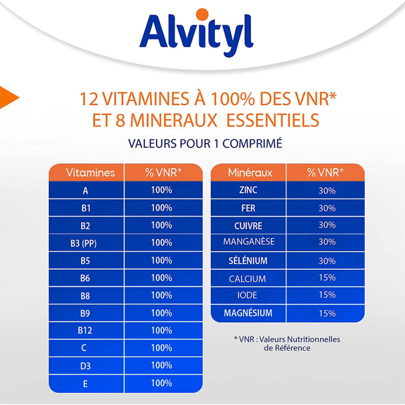 Fatigue, baisse de forme, manque de vitalité Alvityl® Vitalité à avaler est une association complète de 12 vitamines et 8...
