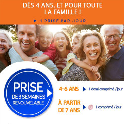 Enfant de 4 à 6 ans : ½ comprimé à croquer par jour.