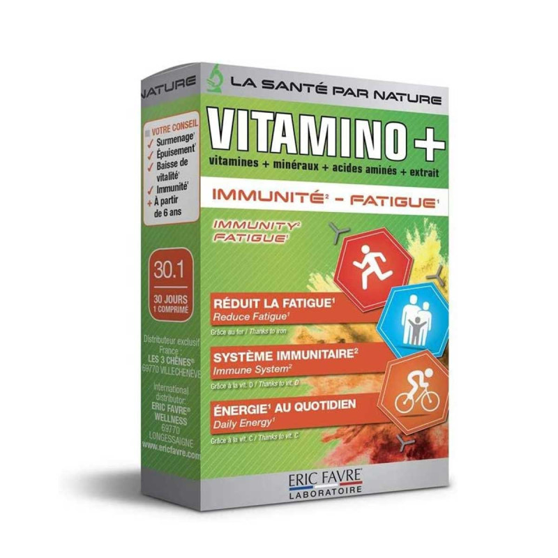 Pour booster sa forme et renforcer son immunité, rien ne vaut un cocktail à base de vitamines, de minéraux ou de plantes. Vitamino + est un complément alimentaire complet (vitamines, minéraux et acides aminés) :