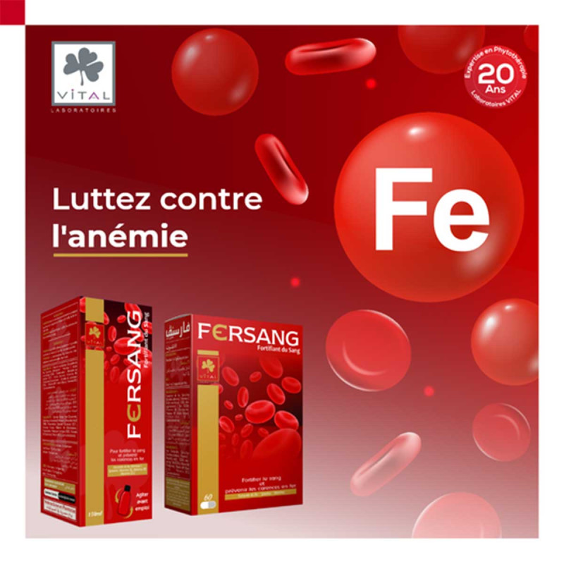 Le sirop fersang de Vital pour adulte préviens les carences en fer et traite l'anémie.