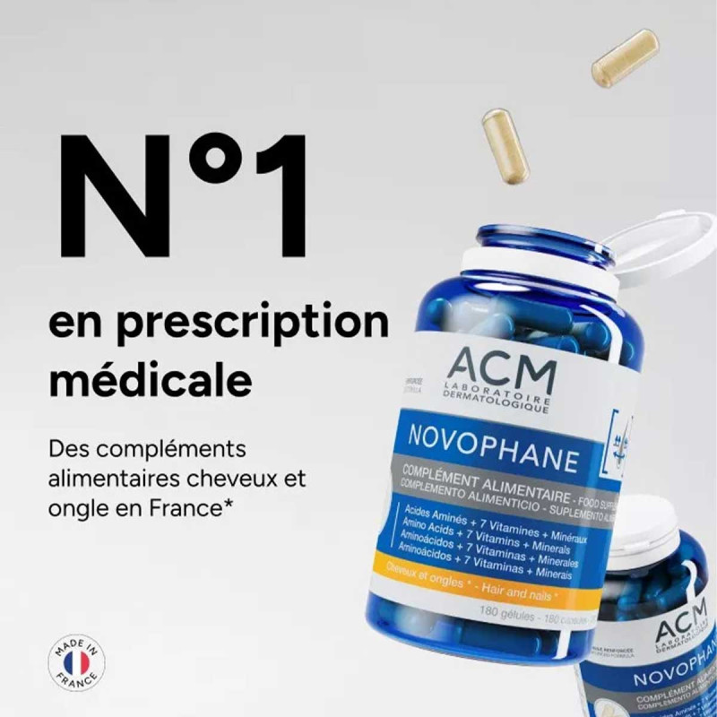 - Chute de cheveux passagère ou saisonnière, altération de la qualité des cheveux, ongles fragiles, mous, dédoublés, cassants, Novophane gélules formule renforcée contient une formule très complète avec des acides aminés, vitamines, minéraux et silicium végétal pour maintenir les cheveux et les ongles en bonne santé et les rendre plus résistants.