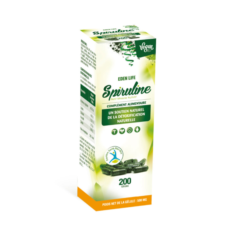 La spiruline est une variété de microalgues à très haute teneur en protéines et d'une richesse nutritionnelle exceptionnelle en acides aminés essentiels, vitamines et minéraux. Il aide à retrouver un bien-être général en apportant Tonus et Vitalité, il favorise la récupération physique et renforce le système immunitaire. La spiruline fournit de l'énergie et de la force, stimule le système immunitaire et augmente la protection antioxydante. C'est un « aliment sain » qui s'intègre dans une alimentation sportive, intellectuelle, diététique et nutritionnelle. La spiruline est particulièrement recommandée pour les sportifs, les femmes enceintes, les enfants et adolescents, les végétariens, les personnes fatiguées et stressées, les personnes obèses qui souhaitent perdre du poids, les personnes en convalescence et les personnes âgées. La Spiruline Eden Life est produite en Tunisie par un personnel technique hautement qualifié, dans le respect des règles d'hygiène les plus strictes et dans le respect des principes fondamentaux du développement durable.