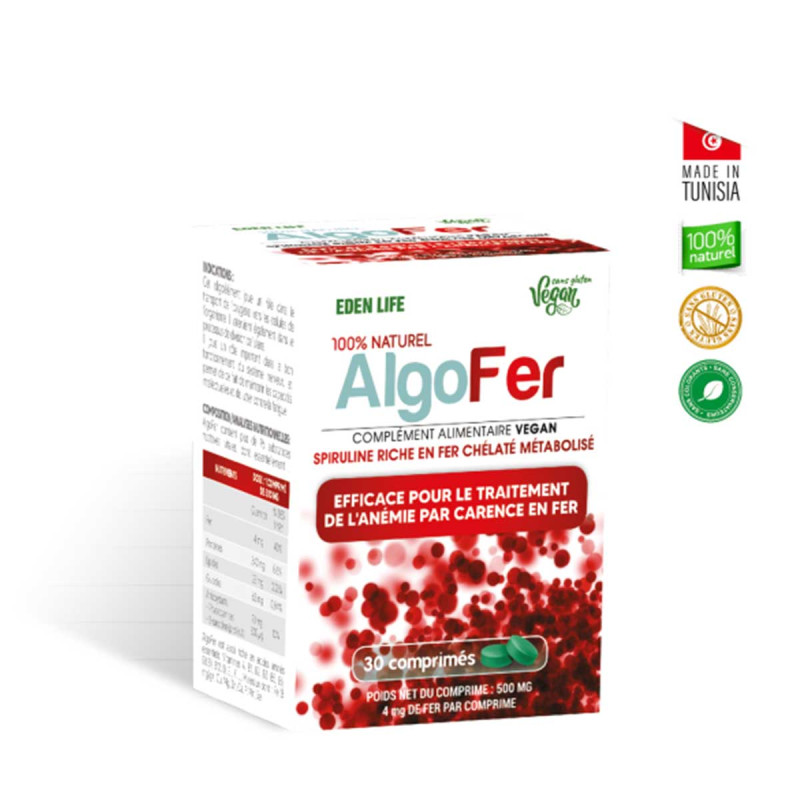 AlgoFer est composé de 100% Spiruline naturelle cultivée dans son milieu enrichi en Fer. La spiruline absorbe cet oligoélément en le complexant avec ses propres acides aminés (Fer amino-compléxé) et constitue lors une source idéale en fer particulièrement assimilable et présentant une haute tolérance intestinale et une biodisponibilité optimale.