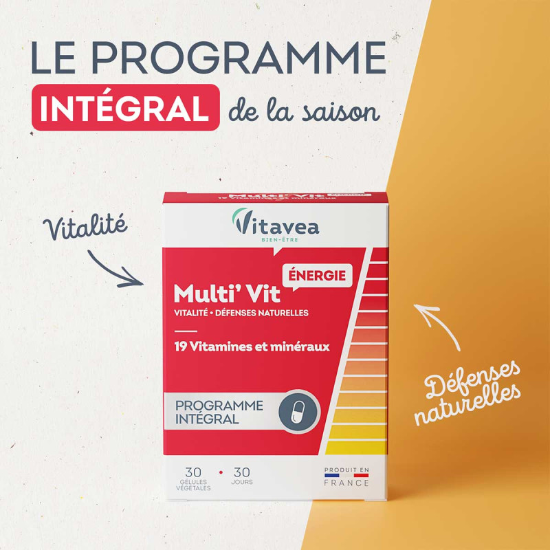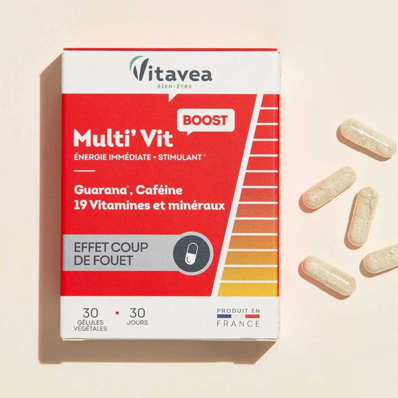 La formule Multi'Vit Boost Vitavea Bien-être est votre alliée pour retrouver la forme physique et mentale en procurant un véritable effet coup de fouet.