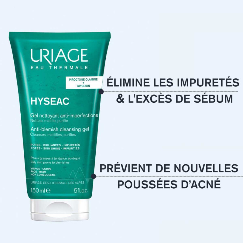 HYSÉAC Gel Nettoyant élimine impuretés et excès de sébum sans agresser la peau. Sa mousse légère et sa formule sans savon offrent une sensation de fraîcheur immédiate, tout en régulant l’excès de sébum et en réduisant les imperfections. Résultat : une peau plus pure, plus douce et éclatante de santé au quotidien !