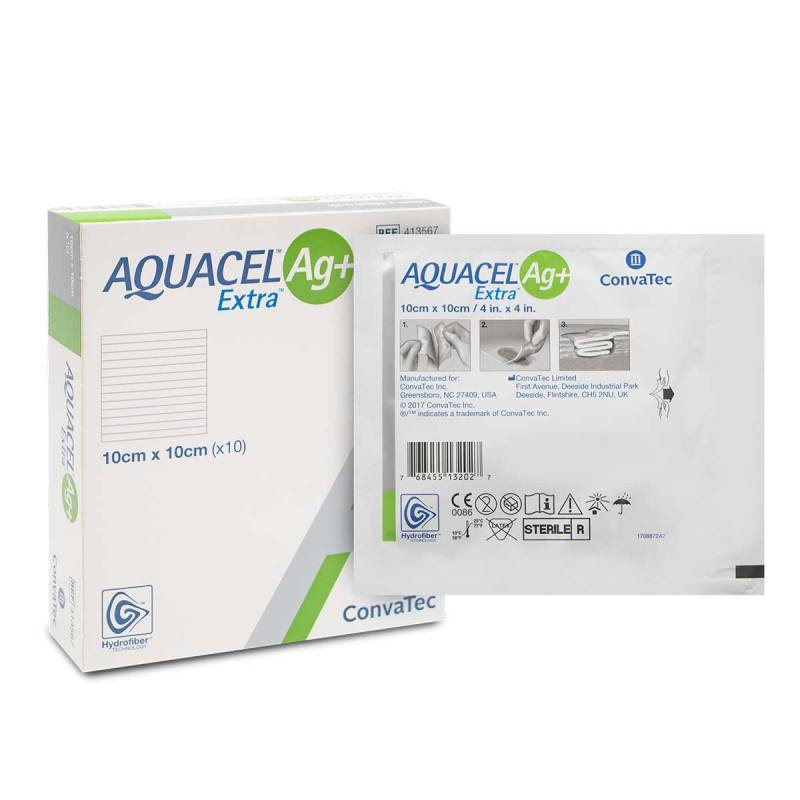 Ag+. Le pansement AQUACEL® Ag+ Extra se compose de deux couches fabriquées avec la technologie Hydrofiber™ et liées par couture, ce qui augmente de neuf fois sa résistance et de 50 % sa capacité d'absorption comparativement au pansement AQUACEL® Ag standard2.