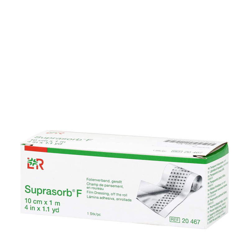 le pansement film en rouleau Suprasob - F est un film pansement très souple, perméable à la vapeur d'eau, auto-adhésif et transparent.