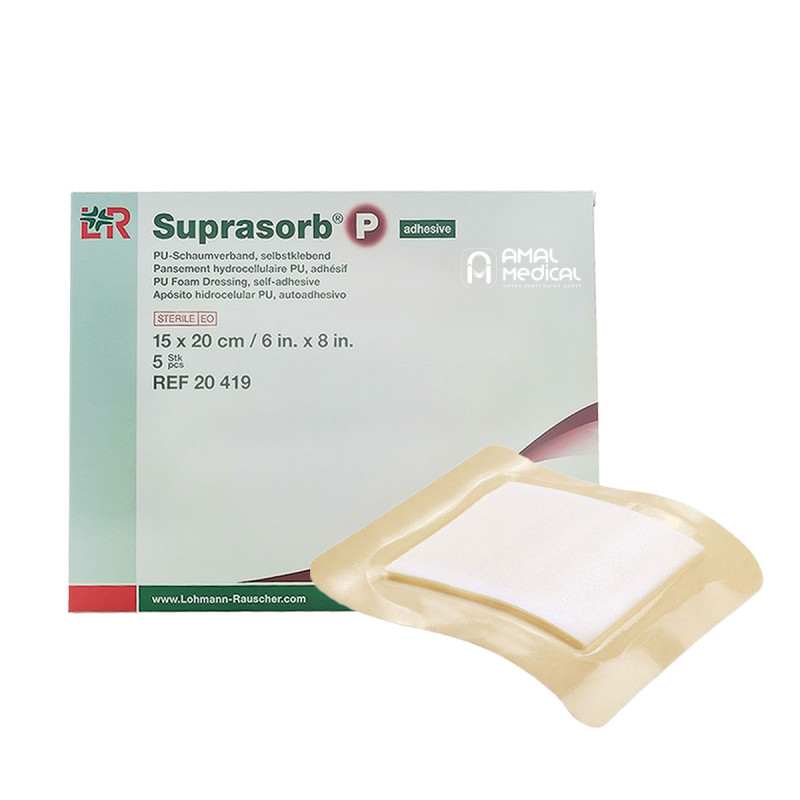 Le pansement hydrocellulaire Suprasob P adhésif est un pansement composé de trois couches: une couche support en polyuréthane avec un adhésif acrylate, une couche intermédiaire en mousse de polyuréthane et une couche en polyuréthane micro-perforé au contact de la plaie. Chaque pansement est en enveloppé séparément, prêt à l'emploi est stérilisé à l'oxyde de l'éthylène.