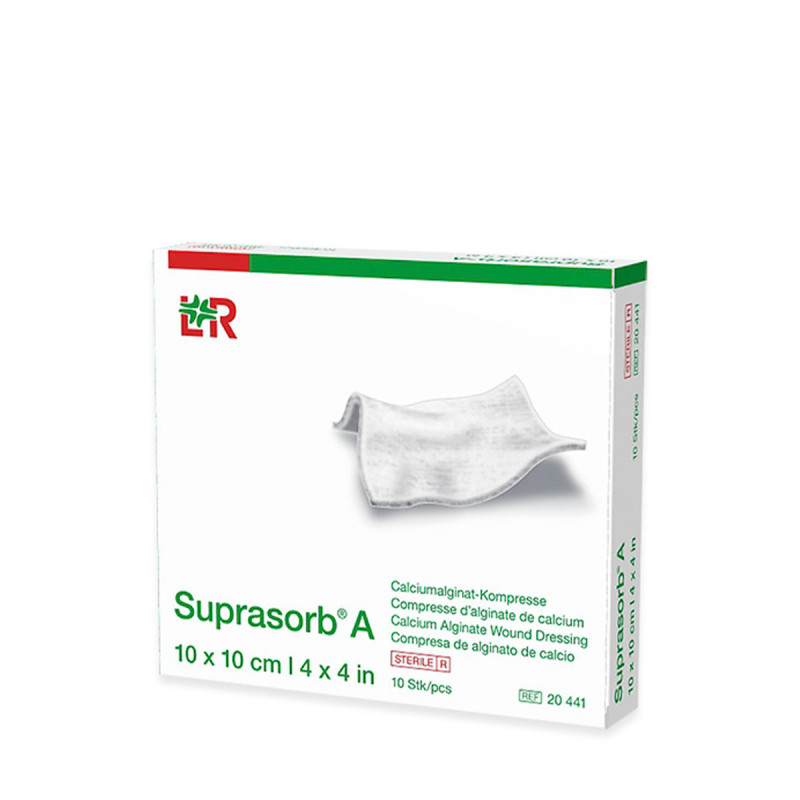 Suprasorb A est un pansement d'alginate de calcium qui crée un environnement propre dans les plaies très exsudatives (qui produisent beaucoup de sécrétions). Il est composé de fibres d'alginate de calcium, issu d'algues brunes. Lorsqu'ils sont appliqués sur l'escarre, ils présentent une formation rapide de gel en échangeant les ions calcium du pansement avec les ions sodium de la sécrétion de la plaie.
