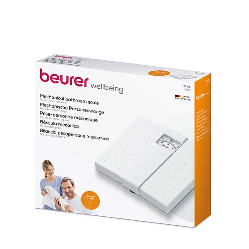 Le Beurer MS 01 est un pèse-personne mécanique classique, conçu pour celles et ceux qui recherchent un appareil fiable, sans complication et prêt à l'emploi. Il ne nécessite aucune pile et propose une lecture du poids en un coup d’œil grâce à un affichage analogique large et clair. Sa surface antidérapante offre une excellente stabilité, tandis que son plateau facile à entretenir s’intègre parfaitement dans toutes les salles de bain.