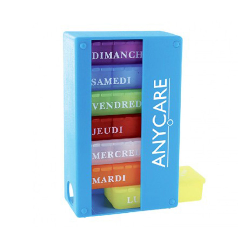 Doté des sept couleurs de l’arc-en-ciel, le pilulier hebdomadaire Anycare est un accessoire aussi astucieux qu’indispensable pour éviter le risque de se tromper dans son traitement lorsqu’il implique le recours à plusieurs médicaments, ou d’omettre d’absorber telle pilule importante au cours de la journée.