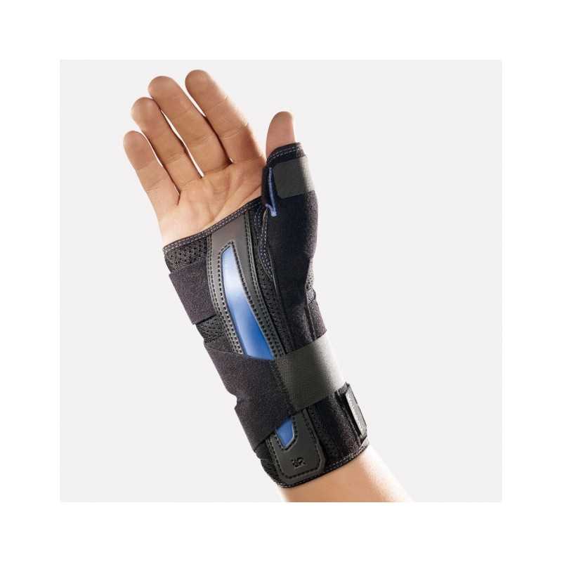 Orthèse poignet pour états d’irritations post-traumatiques et post-opératoires au niveau de la base de la main et du poignet, de l’articulation carpo-métacarpienne : du pouce ou de l’articulation métacarpo-phalangienne; de la base du pouce, par exemple : lésion ligamentaire du poignet, lésion du ligament latéral ulnaire au niveau de l’articulation de la base du pouce (pouce du skieur) et rhizarthrose STT.