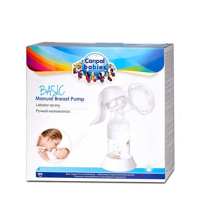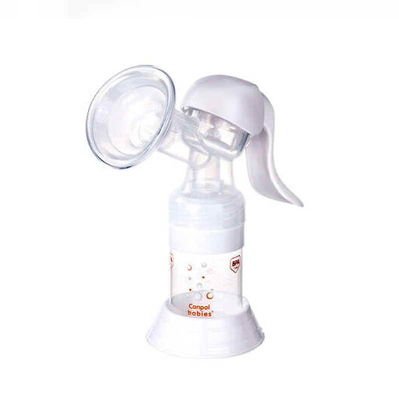Le tire-lait manuel de base s'adapte à tous les biberons anti-coliques et standards Canpol grâce à l'adaptateur inclus. L'ensemble comprend : un corps de tire-lait avec une poignée de pompage, un clapet anti-retour en silicone, un biberon et un adaptateur de biberon.