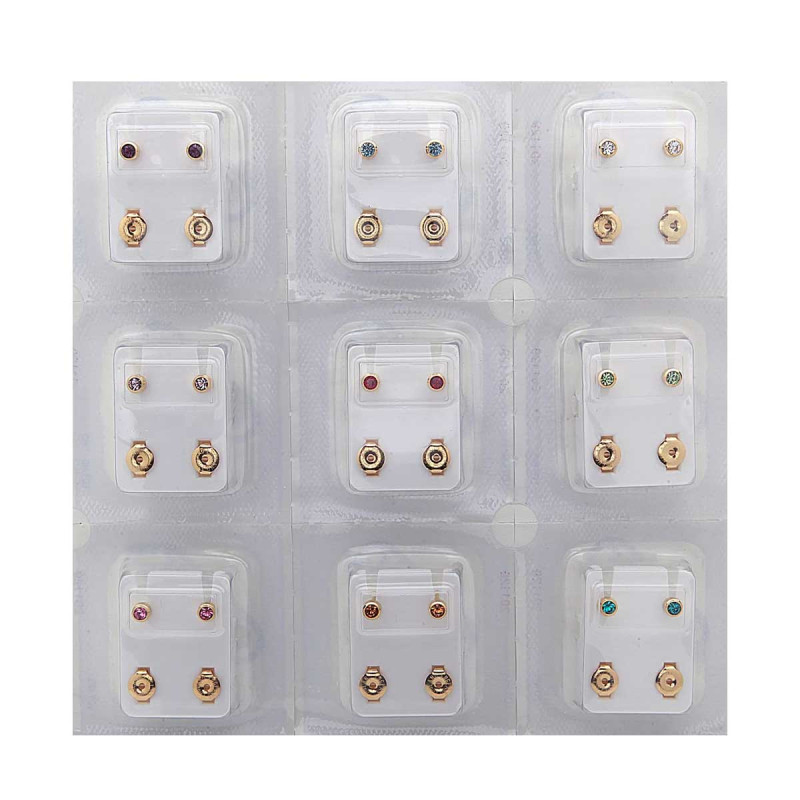 Caflon Boucles d'oreille piercing oreille goujons 4mm couleurs assorties acier chirurgical plaqué or Les boucles d'oreilles sont scellées et stérilisées dans des emballages individuels Livré avec un dos de boucles d'oreilles doré.