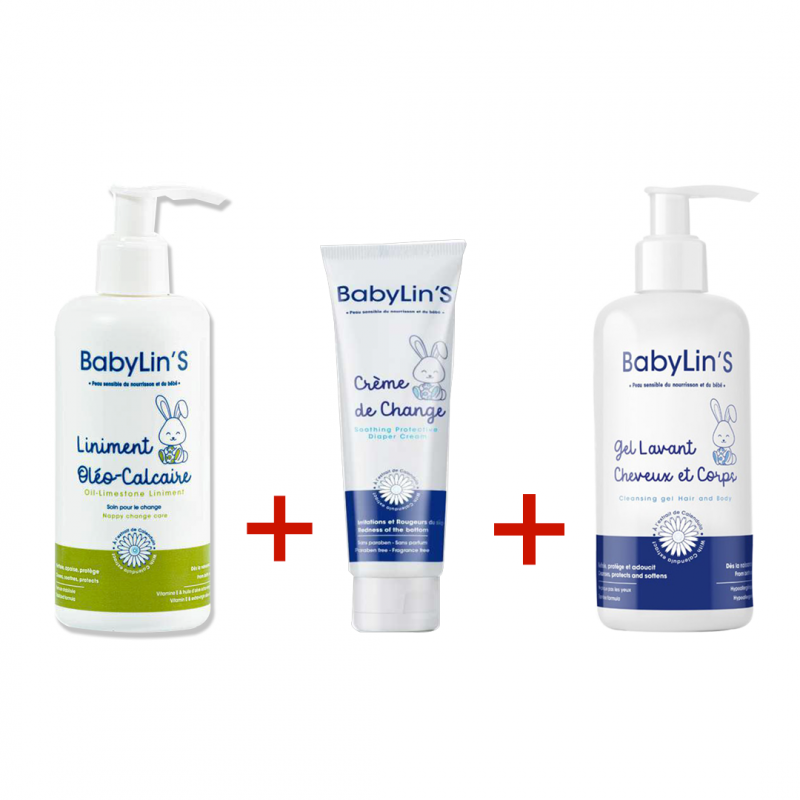 Coffret babyLin's Liniment Oléo-calcaire, Crème de change, Gel lavant cheveux et corps