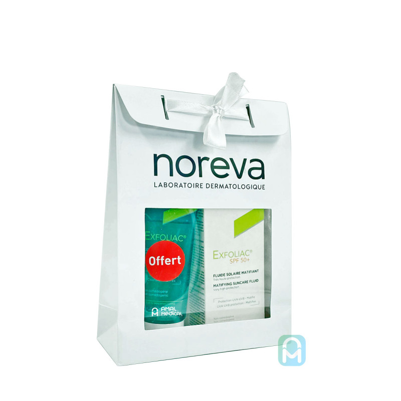 Découvrez le duo parfait pour prendre soin de votre peau grasse à imperfections : Exfoliac® Fluide Solaire Matifiant SPF 50+, accompagné de son gel nettoyant Exfoliac® 100ml offert. Ce pack combine une protection solaire avancée et un soin nettoyant efficace, pour une routine complète qui purifie, matifie et protège votre peau au quotidien.