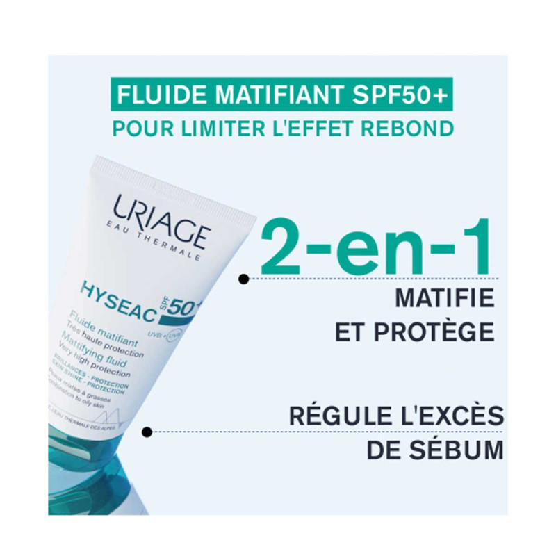 Le Fluide matifiant SPF50+ HYSEAC hydrate et matifie les peaux mixtes à grasses. Il protège efficacement des UVA, UVB et des radicaux libres pour limiter l'effet rebond de l'acné et l’apparition des marques liées au soleil. Sa texture est non collante et non grasse. Absorption rapide. Fini invisible. Testé sur peaux à tendance acnéique sous contrôle dermatologique. Non comédogène.
