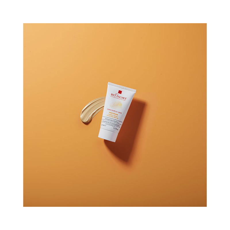 Bio-Taches® Solaire SPF50 Teintée est un soin novateur et réellement efficace pour lutter contre les tâches brunes sur la surface de la peau.