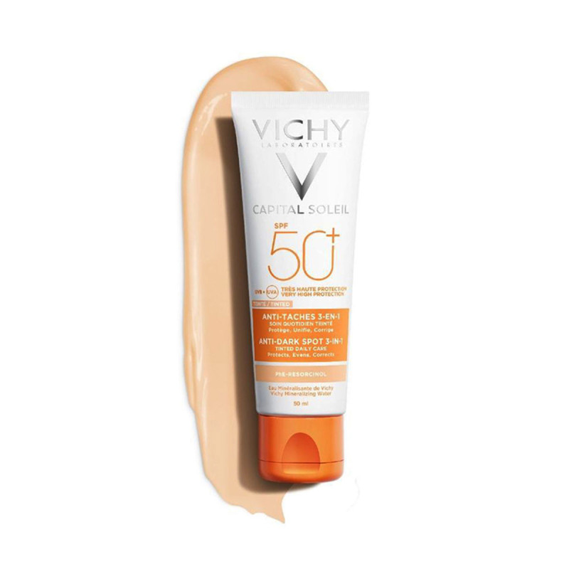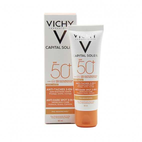 Grâce aux pigments minéraux universels Vichy Capital Soleil ( VICHY ANTI-DARK SPOT ) unifie immédiatement, corrige les taches jour après jour et protège contre les rayons UVB/UVA.