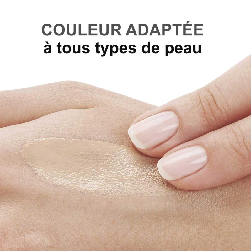 Grâce aux pigments minéraux universels VICHY IDEAL SOLEIL ANTI-TACHE ( VICHY ANTI-DARK SPOT ) unifie immédiatement, corrige les taches jour après jour et protège contre les rayons UVB/UVA.