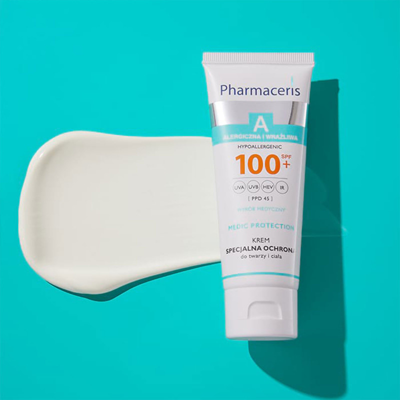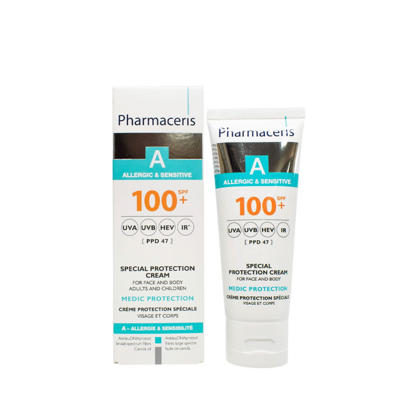 La Pharmaceris A Crème Protection Spéciale SPF 100+ est conçue pour les peaux les plus vulnérables au soleil. Elle offre une protection très intensive contre l’ensemble du spectre lumineux nocif : UVA, UVB, lumière HEV (bleue) et rayons infrarouges IR.