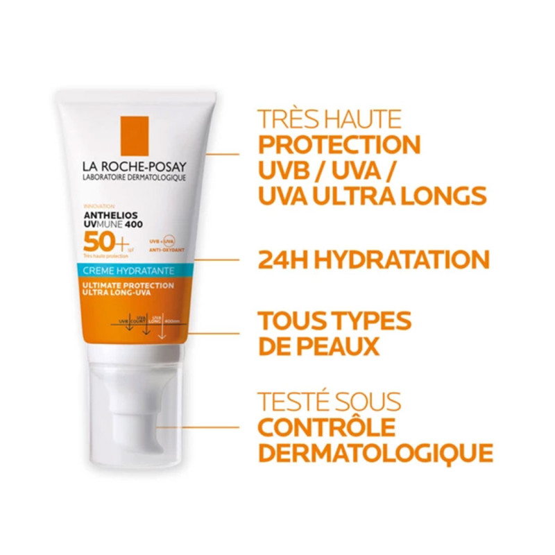 La crème solaire peau sensible Anthelios UVMUNE 400 50+ comporte le nouveau filtre MEXORYL400 qui protège la peau des rayons UVA ultra-longs jusqu'à 400nm.