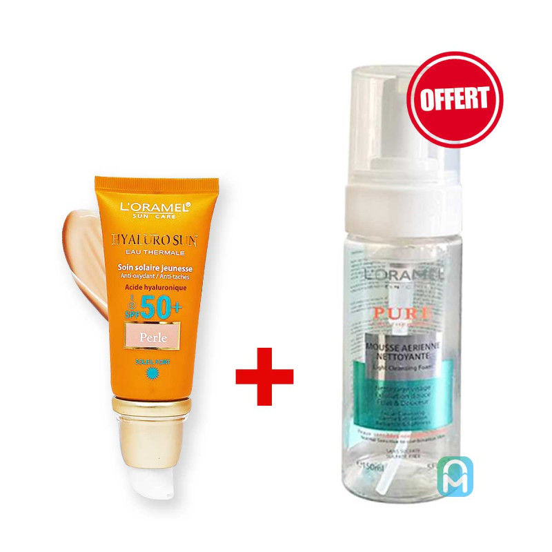 Soin solaire teinté Anti-oxydant & anti- tâches grâce à l'acide hyaluronique pour tous types de peaux avec une mousse nettoyante Pure offerte.